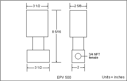 EPV-500B 具有带 303 型不锈钢内件的黄铜阀体。它具有 3/4 英寸的管件,端口尺寸为 1/2英寸,Cv 为 3.5。