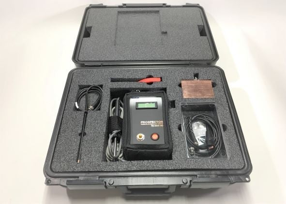 将电源开关拨至 ON;这开始预热 Prospector 的探测器。