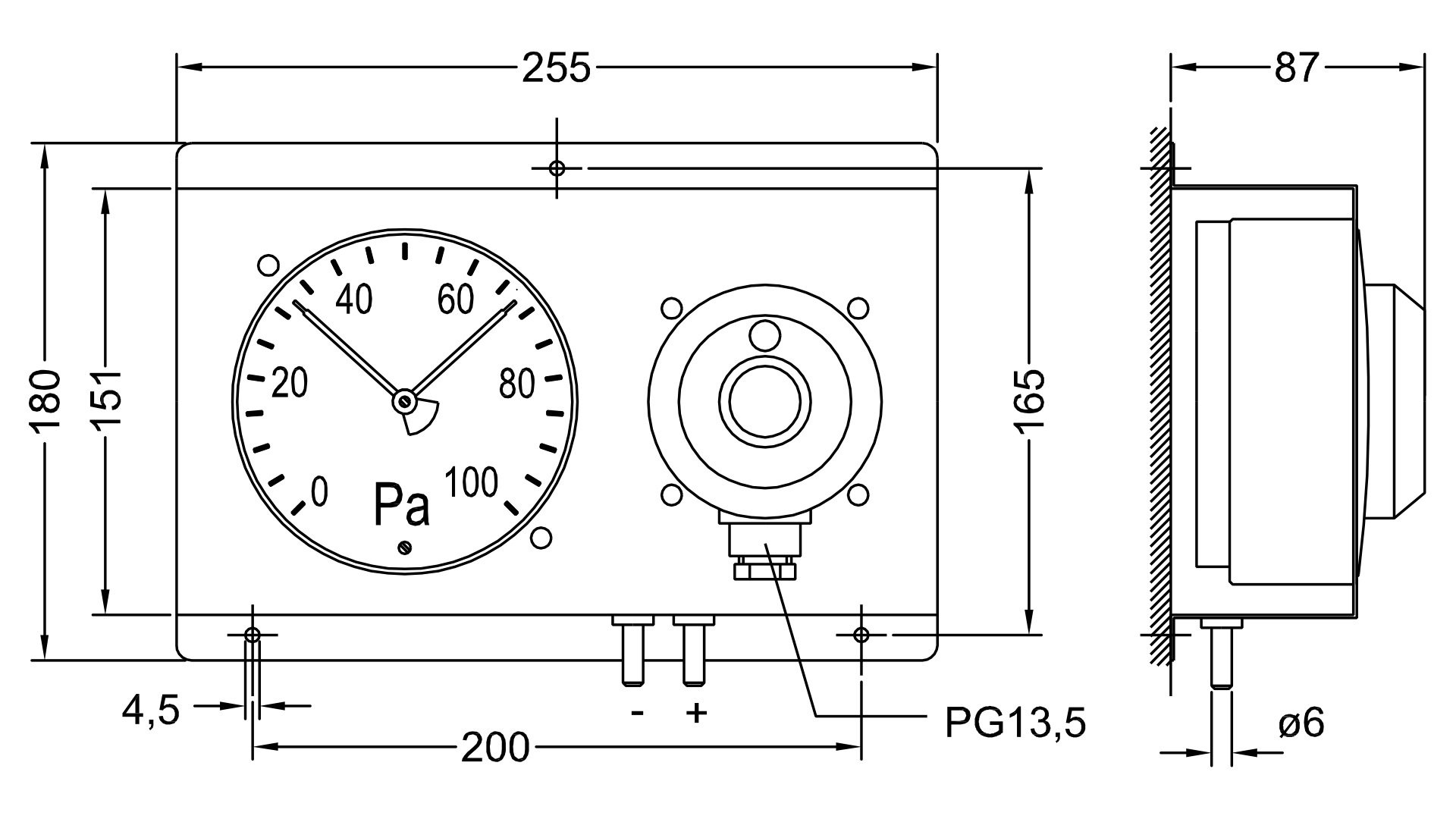 测量范围: 0...100 Pa, 0...200 Pa, 0...500 Pa, 0...1000 Pa, 0...2000 Pa, 0...5000 Pa