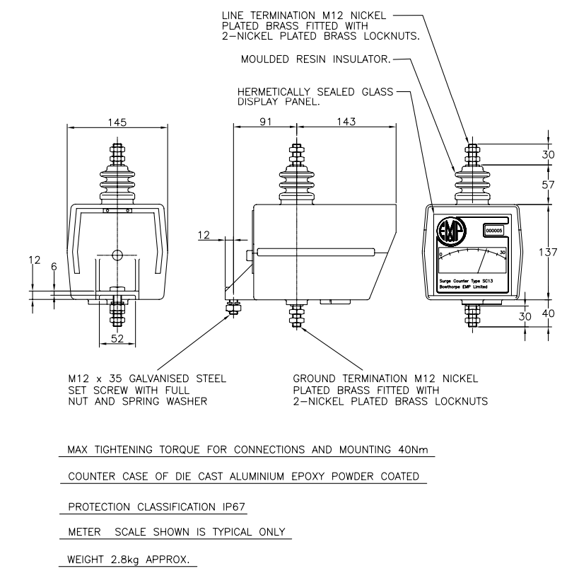 英国原厂Bowthorpe EMP SC13浪涌计数器图纸尺寸