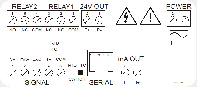 产出选项: 2个继电器和4-20马输出
