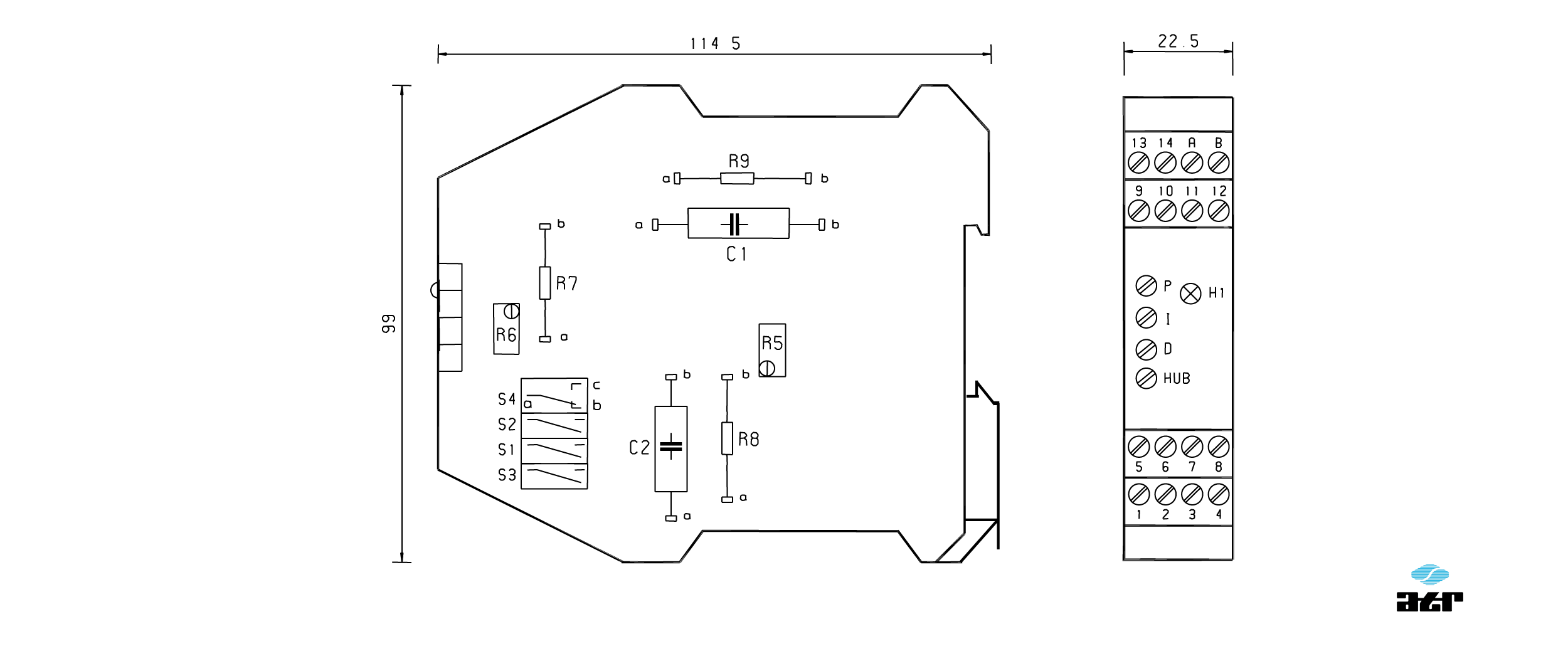窄型结构22.5mm,标准轨道安装TS35,宽电压供电19Vdc-255Vac。ATR VM201重量0.13 公斤。