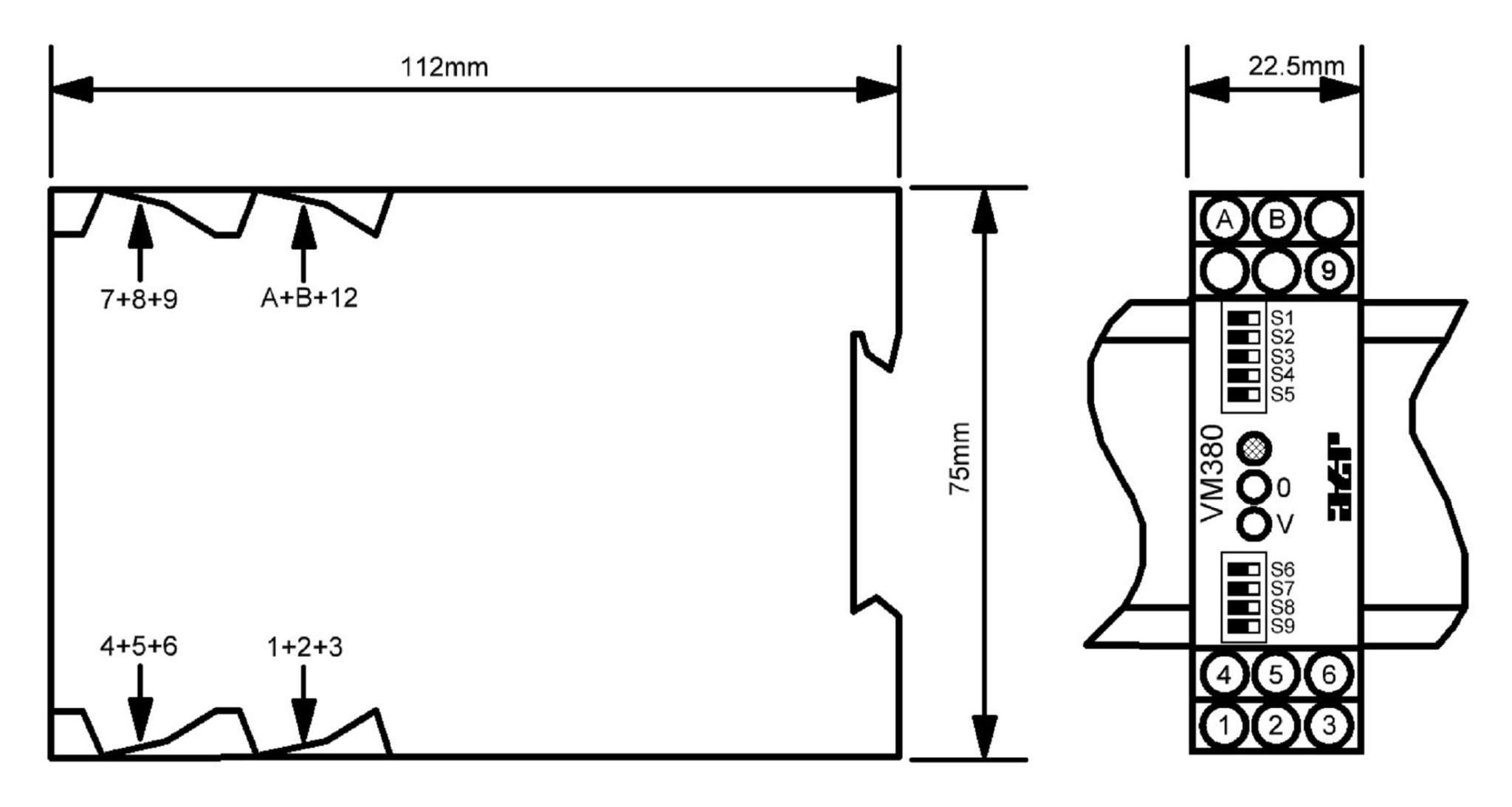 VM380 分离放大器用于单极电气隔离标准信号。输入和输出信号通过外壳前面的 DIP 开关可自由选择。