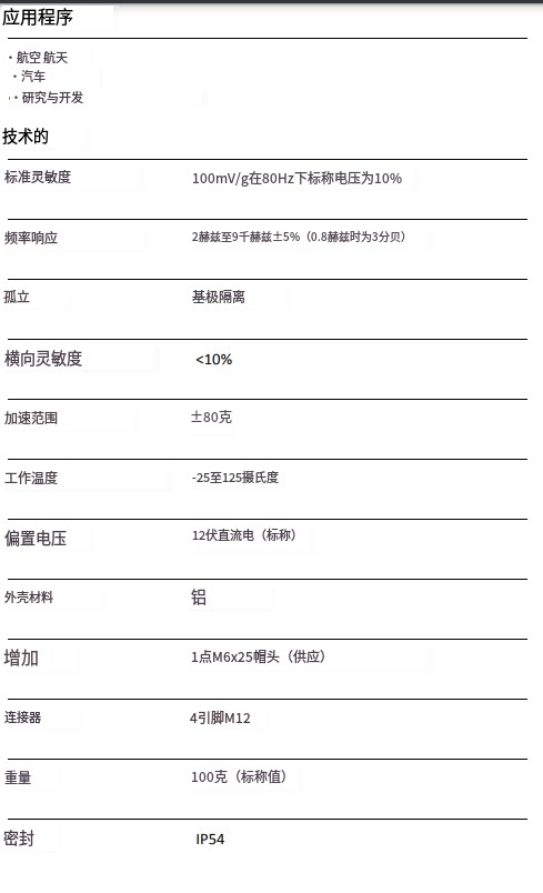 英国Monitran MTN/1330型通用顶入式恒流加速度计规格: