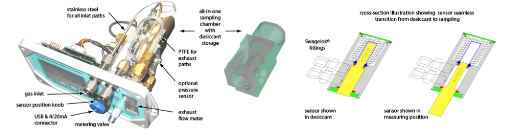 一体式传感器缩回干燥剂储存室,在测量低湿度时实现快速响应