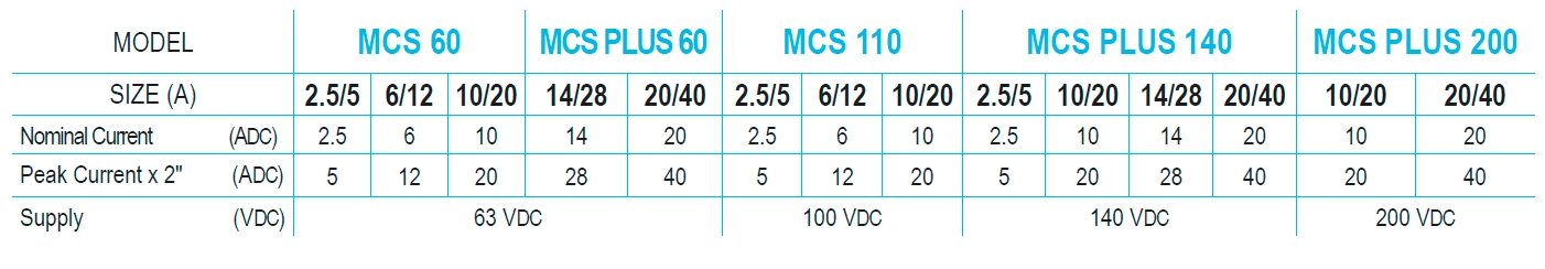 MCS 60,MCS PLUS 60,MCS 110,MCS PLUS 140,MCS PLUS 200
