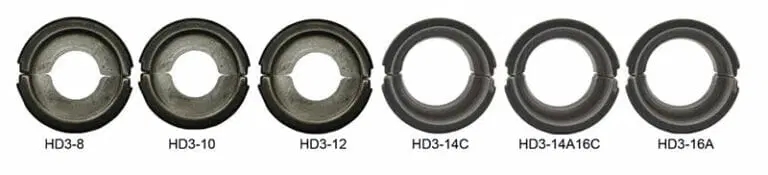 具有两级部分的液压压缩工具,可与 1/4 英寸至 1/2 英寸的可互换模具组一起使用。